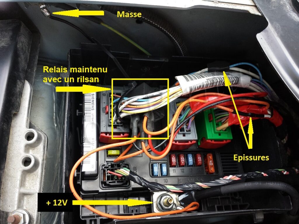 Utilisant la méthode du « relais » je vais donc faire mon installation dans la boîte à fusible du compartiment moteur. C’est la que se trouve les fusibles des phares donc les fils qui les alimentent aussi. Le plus dur est de réussir à les repérer, armez-vous de patience et d’un bon voltmètre.