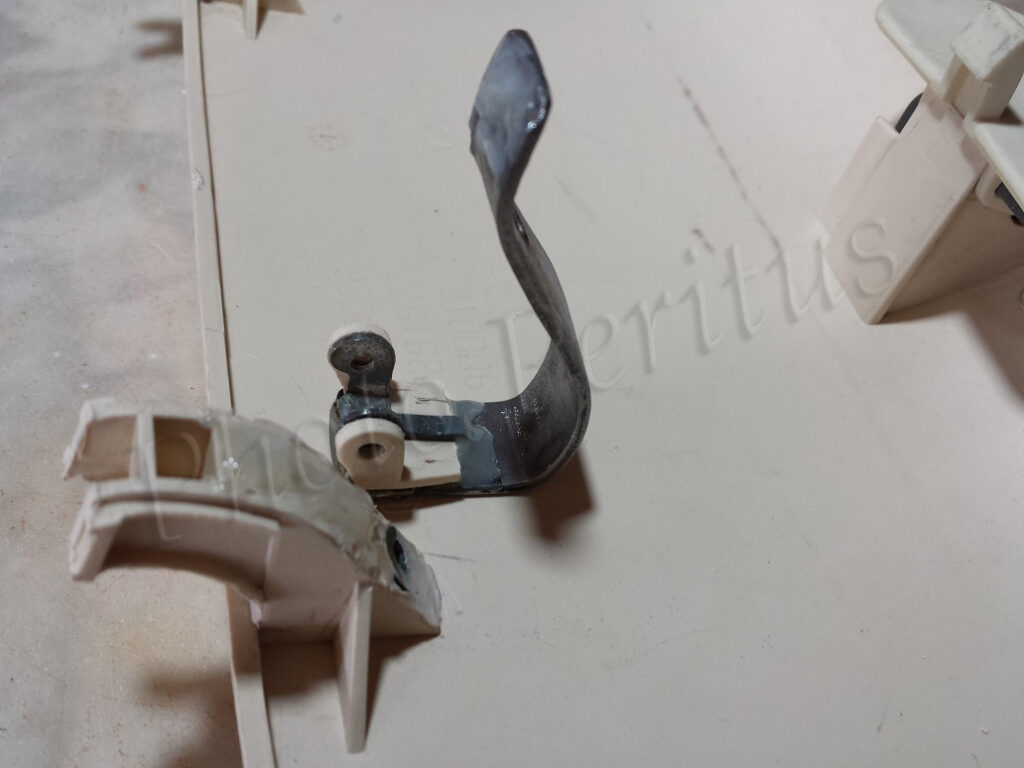 La deuxième porte est finie, un petit coup de peinture sur les pattes métallique et je remonte le tout. Pour remettre les ressorts j’ai tordu la partie de droite et je l’ai coupé.