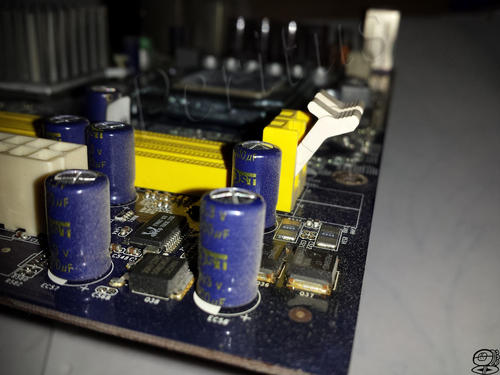 Dès qu’un condensateur gonfle sur le dessus, même que légèrement, les éléments chimiques interne ne sont plus isolés et le condensateur ne fonctionne plus normalement. Cela peut aller jusqu’à l’explosion de celui-ci.