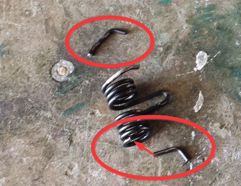 Je déroule une spire sur le ressort de droite et fait de même en reformant une petite partie plate. Je remonte la poignée sur la portière et tout fonctionne normalement à merveille depuis 2018 jusqu’à ce jour.